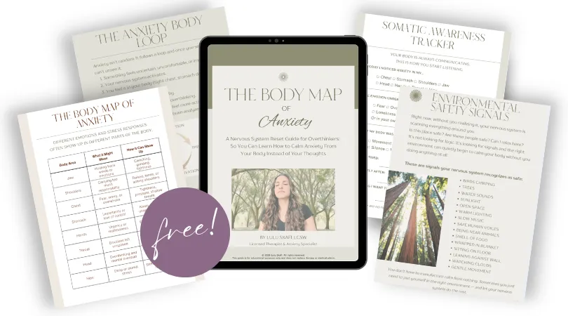 Everything changed when I stopped trying to fix my thoughts and started working with my nervous system. Through my own therapy (as well as my work with clients as a therapist!), yoga, meditation, and learning how anxiety actually lives in the body, I finally stopped living in my head and came back into my life.